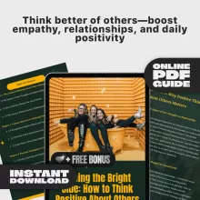 Unlock the secret to stronger relationships and a more fulfilling social life with “Seeing the Bright Side: How to Think Positive About Others”. This downloadable digital guide is your step-by-step roadmap to transforming the way you view people—from coworkers and friends to strangers and family. Packed with science-backed insights and practical exercises, this guide helps you shift from snap judgments and doubt to empathy, trust, and understanding. Whether you’re on a journey of personal growth or looking to elevate your interpersonal skills, this guide gives you the tools to build a more positive mindset and connect meaningfully with others.