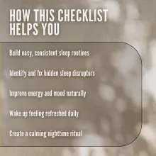 Don’t let another sleepless night pass you by. Download the Sleep Reset Checklist: 50 Simple Steps to Your Best Night’s Rest now and take your first step toward a calm, restful, and truly restorative sleep routine. Your best night’s rest starts here—because you deserve to feel amazing in the morning.
