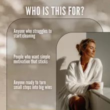 I’m usually paralyzed by mess but this product changed that for good! With simple techniques like habit stacking, now even on hard days there are clear steps which make cleansing manageable.