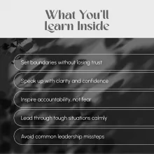 - Learn how to be a firm leader while remaining fair, approachable, and respected