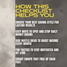 - Perfect for anyone who wants to learn how to save $10K in a year without burnout