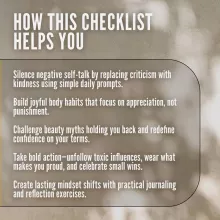 Just downloaded this checklist and it's already making a difference. The mindset shifts are helping me to see my body in a new light.