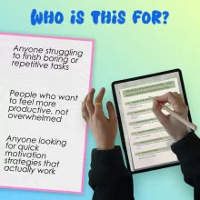 Unlike generic productivity guides, this digital checklist is built specifically for moments when you’re feeling unmotivated by repetitive or uninspiring tasks. It’s not about forcing yourself through willpower — it’s about learning how to motivate yourself to do boring work in a way that actually works for you. With only 7 steps, it’s fast to read, easy to follow, and proven to boost your momentum within minutes.