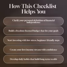The Freedom-Focused Finances Checklist has helped me redefine what financial independence means for me personally, focusing more on achieving my dream life rather than merely making ends meet month after month. The clarity provided by these 13 moves was exactly what I needed!
