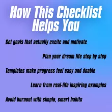 This checklist is perfect for anyone craving clarity, structure, and motivation—whether you’re just starting your personal growth journey or refining your long-term vision. Great for professionals, students, creatives, or anyone ready to map out a fulfilling future.