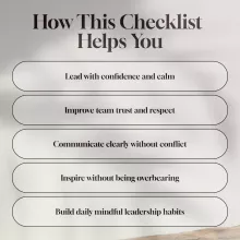 Forget outdated “command and control” styles. This checklist teaches you how to lead through mindset shifts, genuine connection, confident communication, mutual respect, and mindful daily habits. It’s the perfect resource if you want to become the kind of leader people are excited to follow.