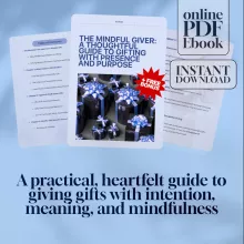 This eBook is ideal for anyone who values intentional living and wants to bring more meaning into their gift-giving. Whether you’re a mindful parent, a thoughtful friend, a conscious consumer, or simply someone looking to give better, The Mindful Giver offers inspiration and clarity every step of the way. It’s also a wonderful tool for coaches, therapists, and mindfulness teachers who want to introduce the concept of mindfulness gifts to their clients or communities.