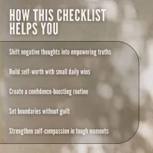 Ever thought a checklist could be your best friend? Well, this one surely is! It has been my companion in the journey towards self-worth. The steps are small yet powerful, helping me challenge negative thoughts and replace them with empowering truths. Not only that, but it's also teaching me to build healthy habits that affirm my value each day. I'm absolutely loving the transformation!