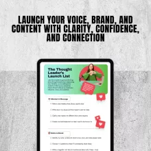 Ready to step into your role as an industry expert, but don’t know where to start? The Thought Leader’s Launch List is your all-in-one digital checklist designed to help you clarify your message, build credibility, and consistently show up as the go-to voice in your space. Whether you’re a coach, creator, consultant, or creative, this action-focused tool guides you through every step of how to become a thought leader in your industry—without the overwhelm.