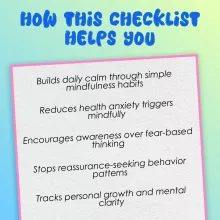 Whether you’re overwhelmed by your thoughts, stuck in a loop of symptom-checking, or simply seeking peace of mind, this checklist helps you make lasting changes—one mindful breath at a time.