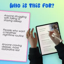 This digital download is ideal for adults who struggle with sleep, whether due to stress, lifestyle habits, or chronic insomnia. It’s especially helpful for those looking for a non-medical, practical way to understand how to manage insomnia and improve their sleep routine in a gentle, step-by-step format.