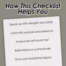 This checklist is perfect for aspiring and established women leaders, managers, entrepreneurs, and professionals who want to grow their leadership style with purpose and authenticity. If you’re ready to learn how to be a successful woman leader and make a lasting impact without burning out, this tool is for you.