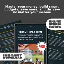 Ready to stop stressing about money and finally feel in control of your spending? Thrive on a Dime: Your Ultimate Guide to Living on a Budget and Saving Money is your go-to digital guide for turning small changes into big savings—without giving up what you love. Whether you’re living paycheck to paycheck or just want to stretch your dollars further, this easy-to-follow guide helps you master how to live on a budget and save money with practical tools, real-life examples, and step-by-step support.