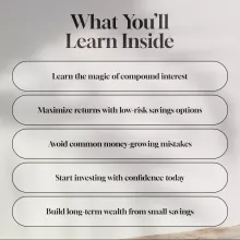 - Clear, simple explanations of how to make money from savings without needing a finance degree
