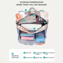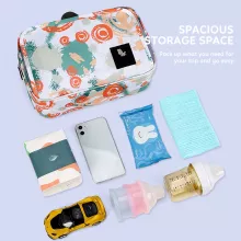 • Organized Storage: Multiple compartments make it easy to organize diapers, bottles, wipes, and other necessities.