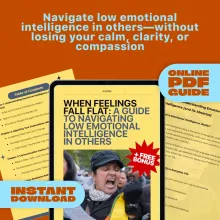 Ready to feel seen, heard, and supported—even when others don’t show emotional awareness? “When Feelings Fall Flat” is your go-to guide on how to deal with someone with low emotional intelligence. Download now and start reclaiming your emotional clarity today.