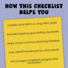 - Step-by-step goal-setting checklist with five clear sections