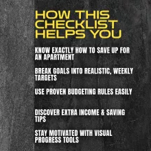 - Unlike generic budgeting ebooks, this checklist is tailored specifically for apartment savings goals