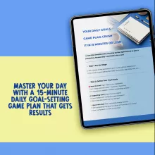Download Your Daily Goals Game Plan today and start making your time work for you. This is your shortcut to consistent wins, boosted productivity, and less stress — all in 15 minutes or less. Hit that download button and take back your day!