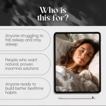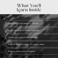 - Quick, actionable tips that show you how to fall asleep fast with insomnia—without overwhelm