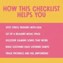 I'm a busy mom of three and trust me when I say, THIS CHECKLIST IS EVERYTHING! 🙌 The music therapy techniques are so simple yet effective. My 'me-time' is now truly relaxing.
