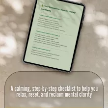 Download Your Relaxation Checklist to Step into Clarity today and start your transformation from chaos to calm. Your path to clarity begins with one small step—check your first box now and feel the difference. It’s time to reclaim your peace, one practice at a time.